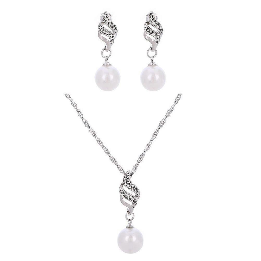 Wedding Jewelry Kit Pearl Necklace with Earrings for Bride 1Set