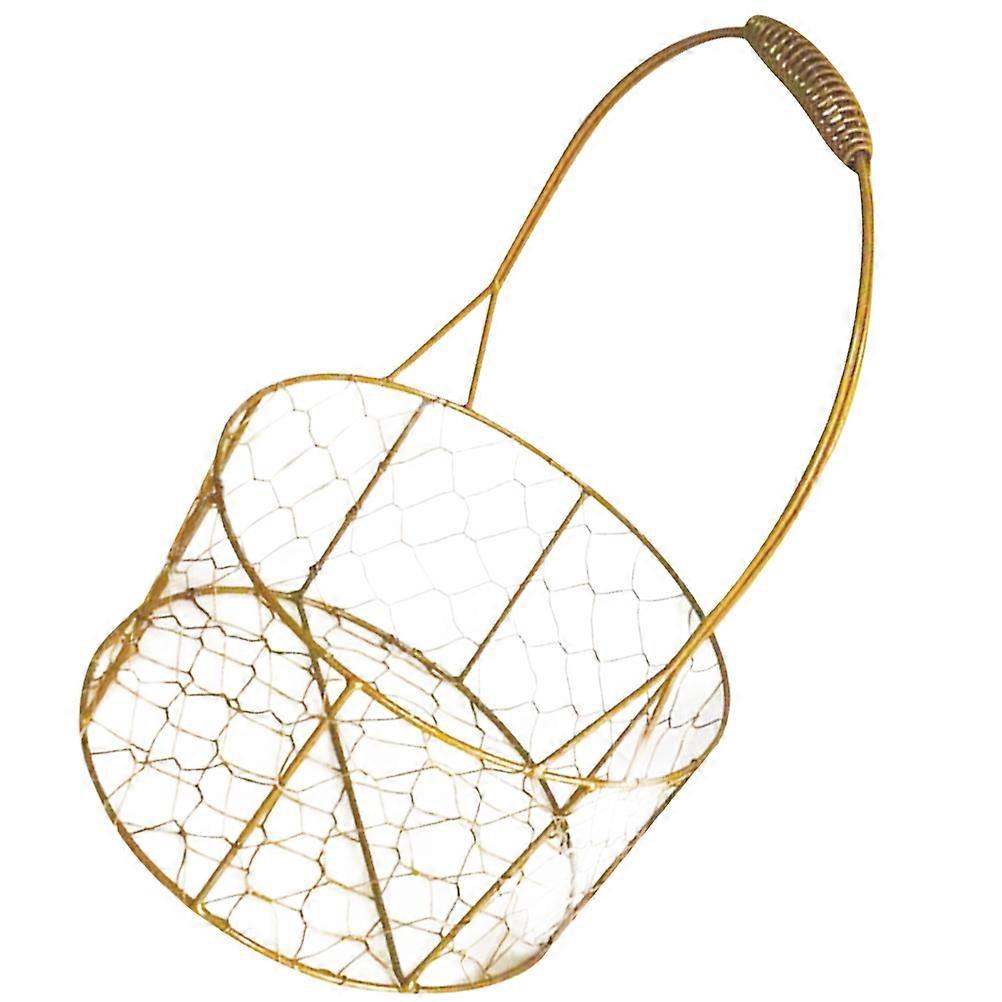 Harvest Basket with Handle Round Flower Basket Wedding Decoration Iron Wire in Golden 1Pack