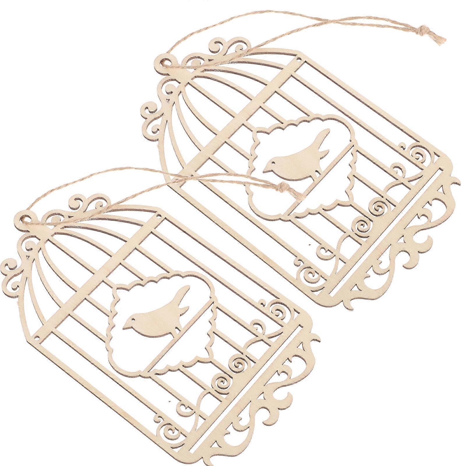 Wood Birdcage Embellishments for Decoration 2Pcs Khaki Wooden Cutouts