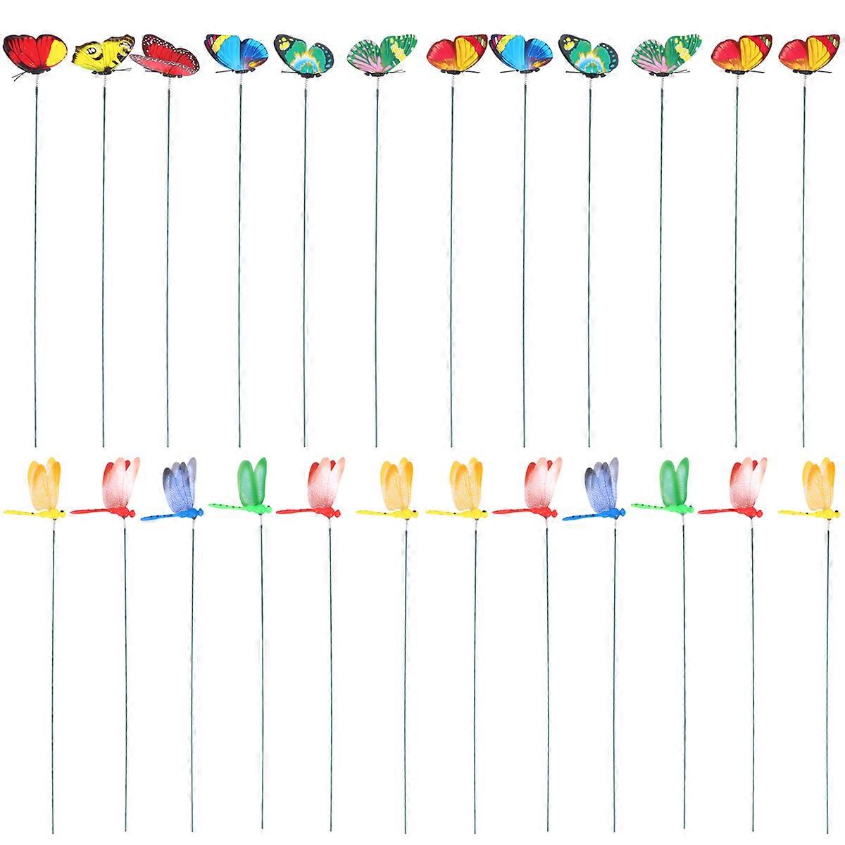 Green Plant Ornaments Simulation Rods for 24Pcs PVC Dragonfly Rods Decoration