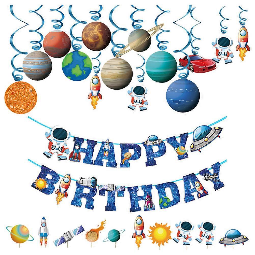 Astronaut Birthday Banner Cake Pick for Decor 1Set Space-Themed Birthday Banner
