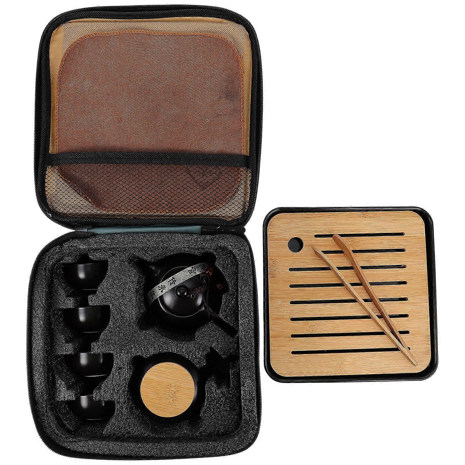 Kung Fu Tea Pot Set for Home Use 1Set Ceramic Travel Tea Ware Black