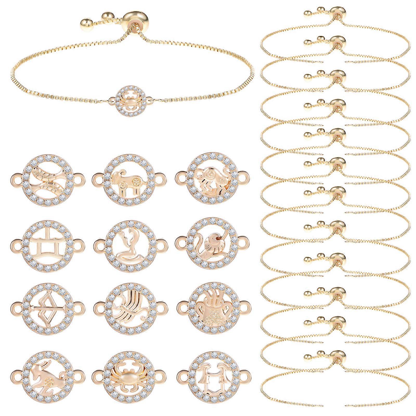 These bracelet chains and charms are made of alloy and copper that is resistant to rust and fading. There is a sufficient number of bracelet chains and charms will meet your daily DIY needs. Our bracelet making kit are lightweight, allowing you to use them for long periods of time. Features -Color:Assorted Color -Material:Alloy, Copper -Size:12.00X0.80X0.80cm/4.72X0.31X0.31in -Different Style: There are multiple styles of the bracelet charms with zodiac design to meet your different DIY needs. -Practical Design: Using these bracelet charms and chains clasp helps you to make jewelry crafts easily, much practical and easy. - : These bracelet chain and charms are made of high grade alloy and copper are not easy to break or deform. -Good Gift: These simple bracelets making accessories are the perfect gift for girlfriends, daughters, mothers, lovers and more. -Versatile: The finished bracelet can be worn with a watch or alone for a low-key elegance, much decorative and versatile. Package list: 12 x Bracelets 12 x Bracelet Charms