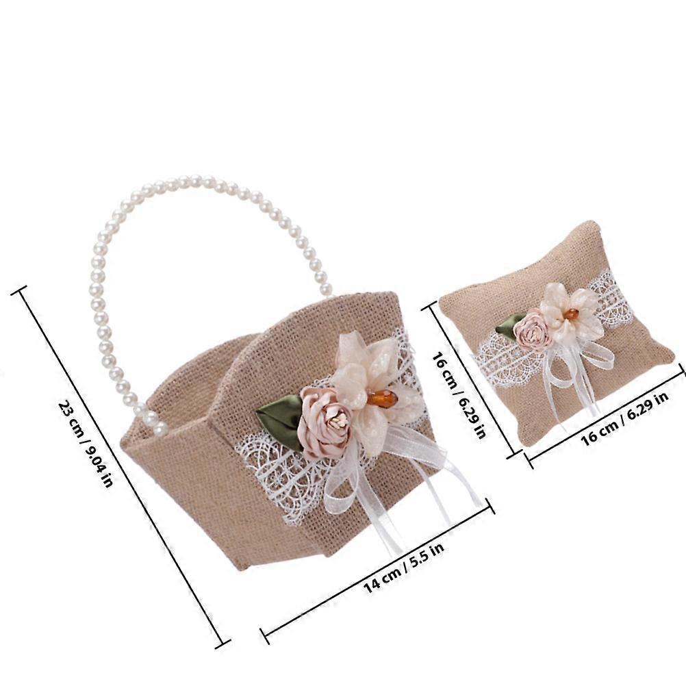 Wedding Ring Pillow and Flower Basket Set for Wedding Girl Basket 1Set Khaki