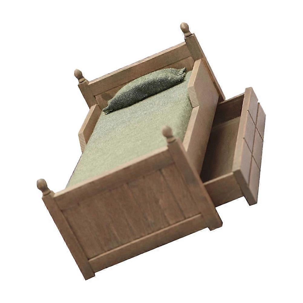 Miniature Bed Model Landscape Prop Dollhouse Decoration Wood Cotton Material for 1Pc