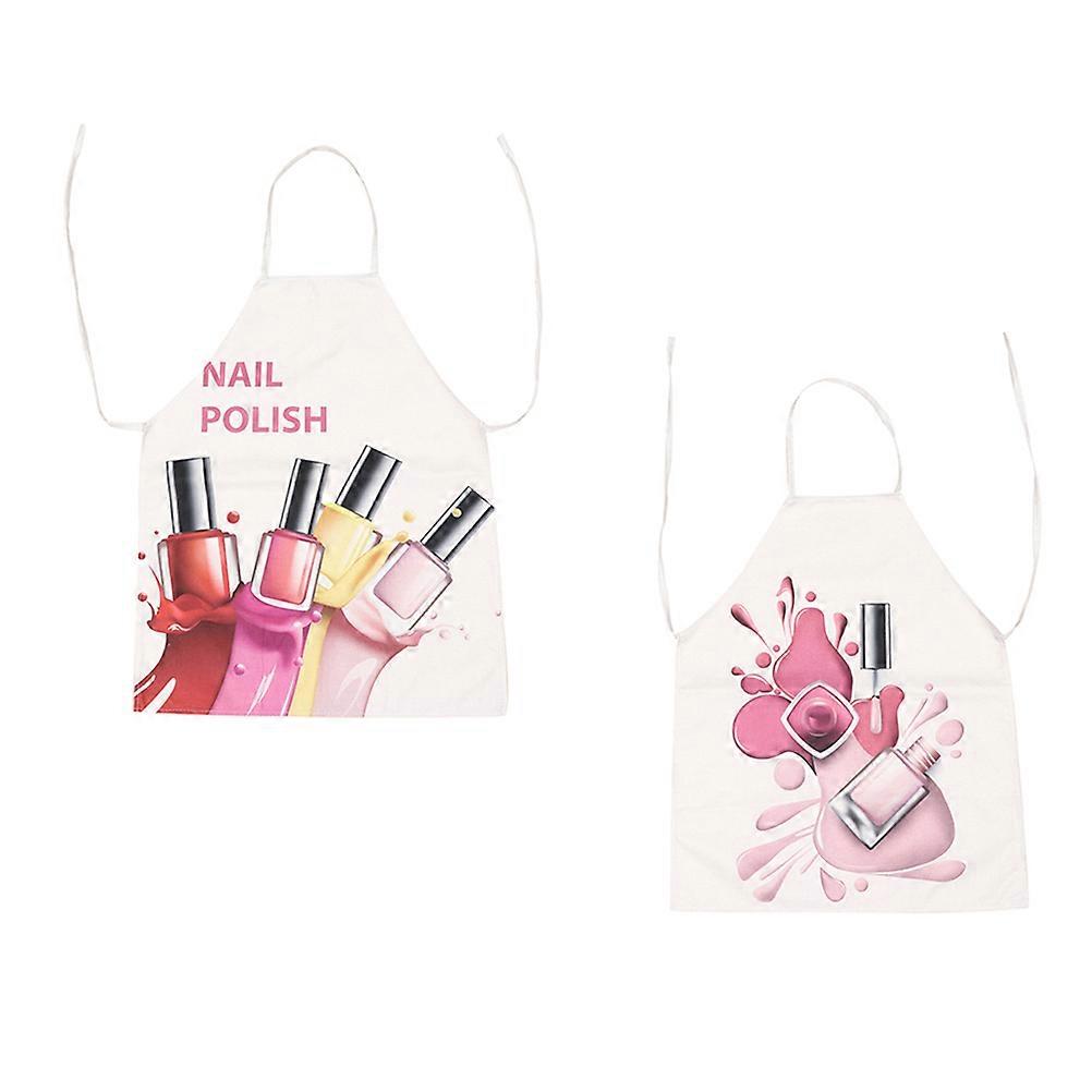 Creative Nail Polish Printing Apron Cotton Linen for Home Use 2Pcs