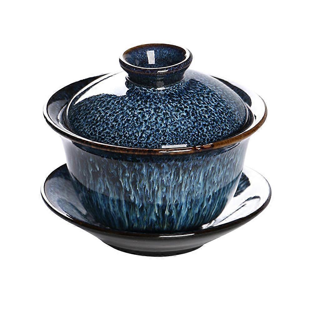 Ceramic Tureen Teacup Blue for Drinking Use 1Set Retro Style