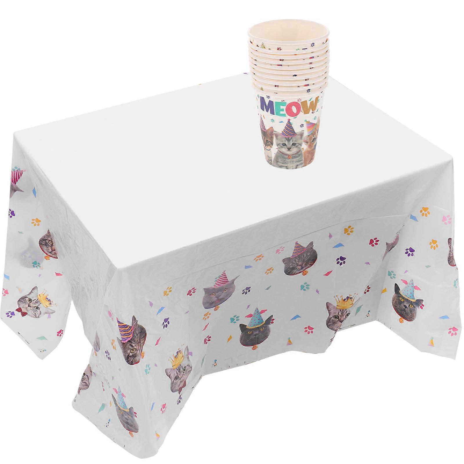 Cat Birthday Party Supplies Paper Cups and Table Cloth for 1Set with Assorted Color Design