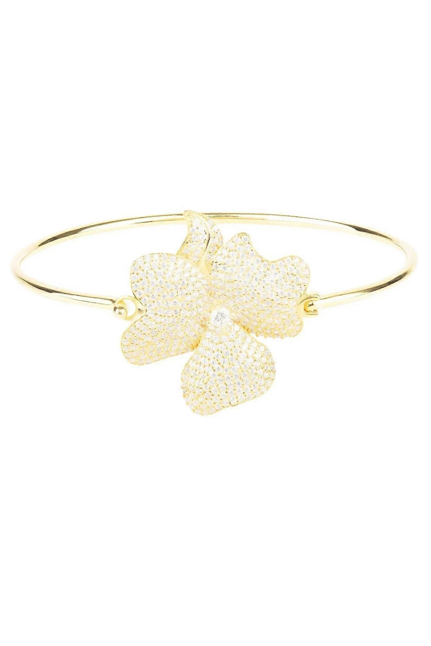 Latelita Women's 925 Sterling Silver Gold-Dipped Flower Statement Cuff Bracelet with Micro Pave White Cubic Zirconia - 19.5cm