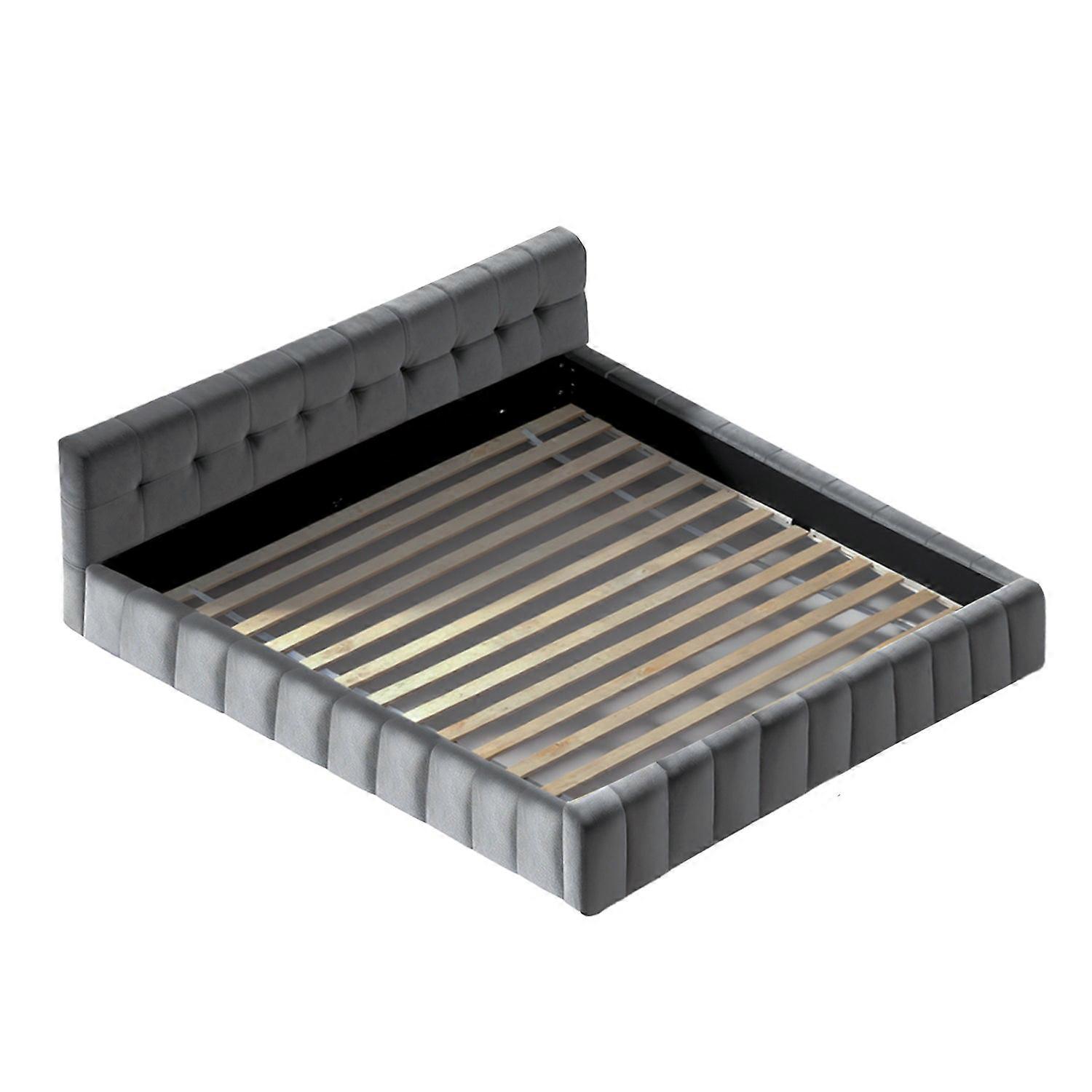Velvet Queen Bed Frame Plush Headboard Platform Base Grey Furniture Queen Bed Frames