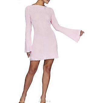 Womens Chic Bell Sleeve Backless Color Block Striped Knit Bodycon Dress Slim Fit High Waist Gown Pink L
