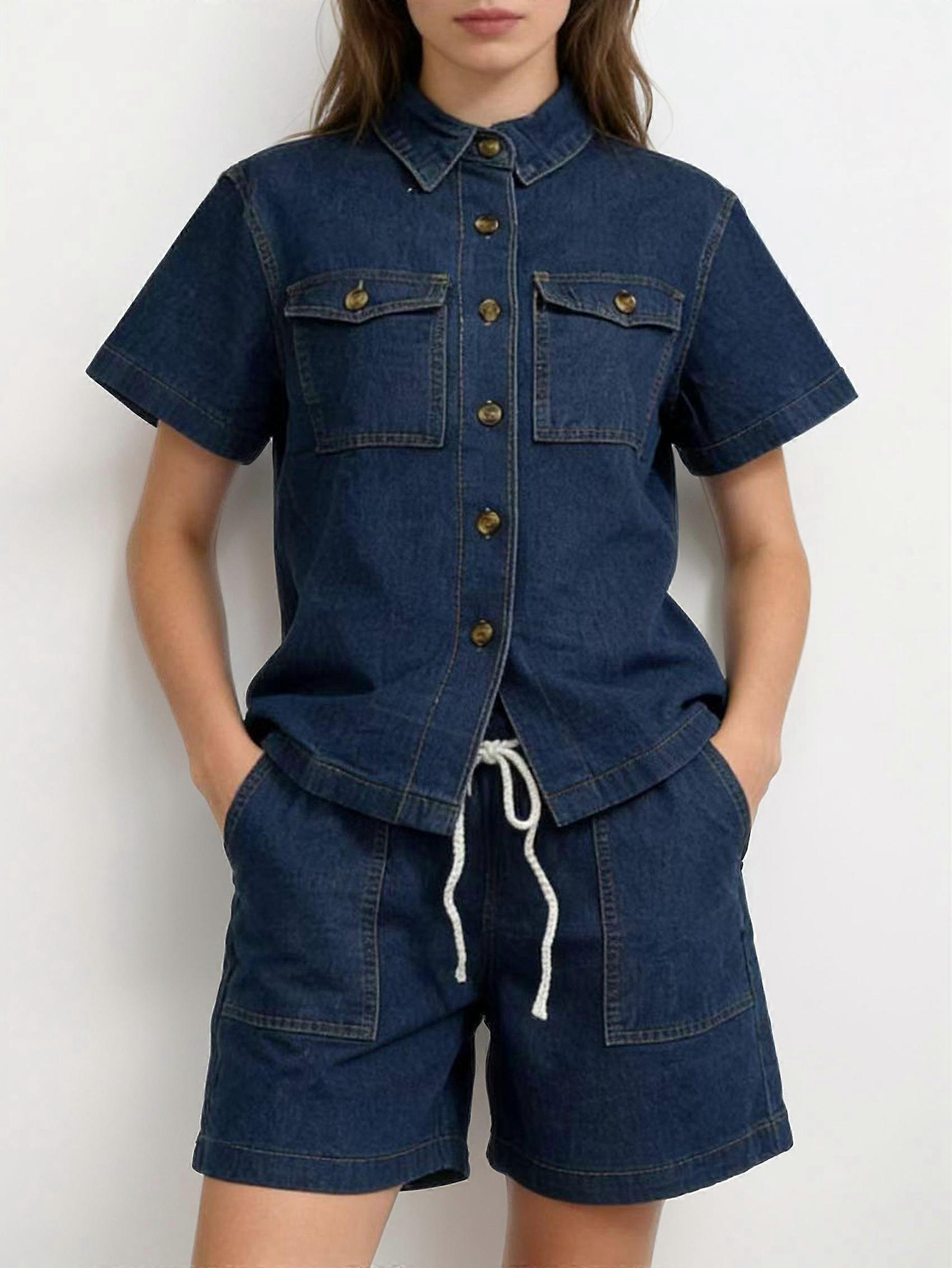 Womens Oversized Short Sleeve Denim Jackets: Trendy Cropped Jean Tops Shackets Deep Blue S