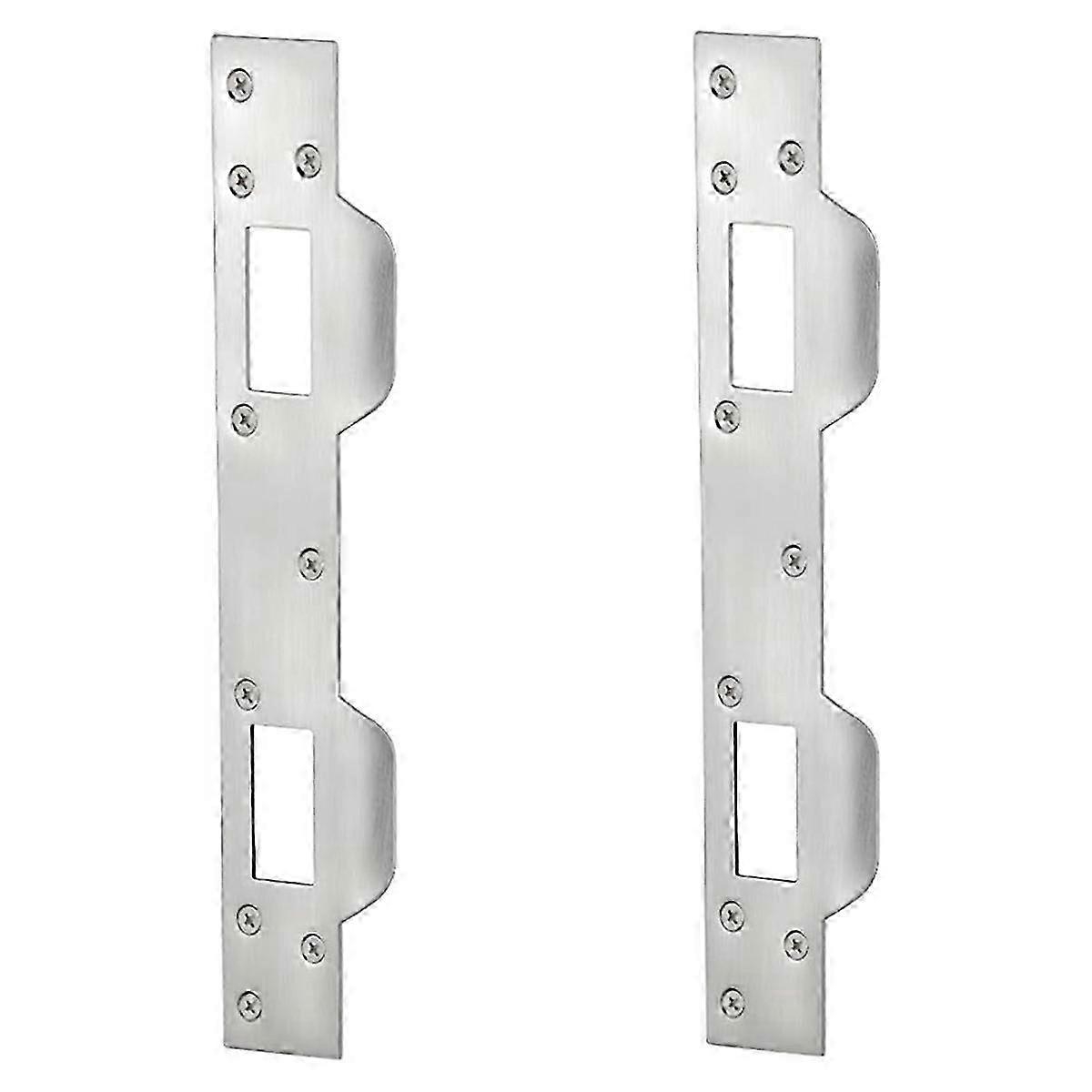 These door strike plates are applicable to door handle latch and deadbolt spaced from 5-1/2inch to 6inch hole centers. Improve Door Security: Heavy duty materials to ensure better protection. Made of 0.08inch(2mm) thick steel. It can effectively prevent doors from being pried open and kicked in. Safe to Use: Edges Passivated to ensure that hands are not scratched during installation and use. Fix Broken Door Jamb: One-piece designed to replace the standard, separate latch plates. More exquisite and sturdy. It can also be used to hide flaws or broken areas in jamb. Solved problem that door had with handle latch and deadbolt not catching. The dimension of the holes is large enough to allow for seasonal ground movement and keep the latches work properly. Easy to Place: Comes with double-sided tape to aid positioning. Just place and stick the latch plate on the door jamb and then install the screws. You don't have to mark the position and keep holding the plate like others when installing. Moveable double-sided tape can also help to test the position before tighten down the screws. Easy to Install: Comes with long and short screws. For more reinforcement, you can install with combining long and short screws. Or you can install with all short screws, which will make installation easier. Sufficient short screws included. Colour:Silver Material:Metal Package Contents: 2 * Door Strike Plate Only the above package content, other products are not included. Note: Light reflection and different displays may cause the color of the item in the picture a little different from the real thing. The measurement allowed error is +/- 1-3cm. Note: The product may have a slight tolerance of 1-3 mm/1-3 g in size/weight, and the image color may differ from the actual item due to lighting.