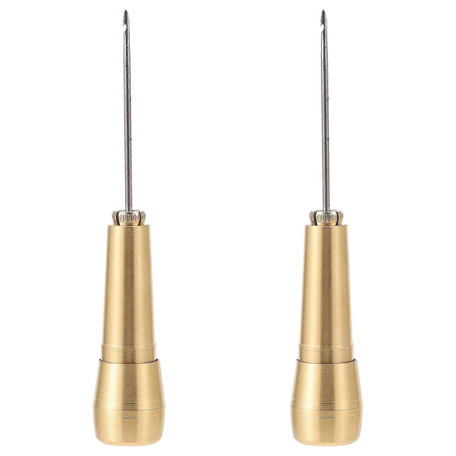 2Pcs Sewing Awls Leather Craft Awls Steel Needle with Copper Handle Gift