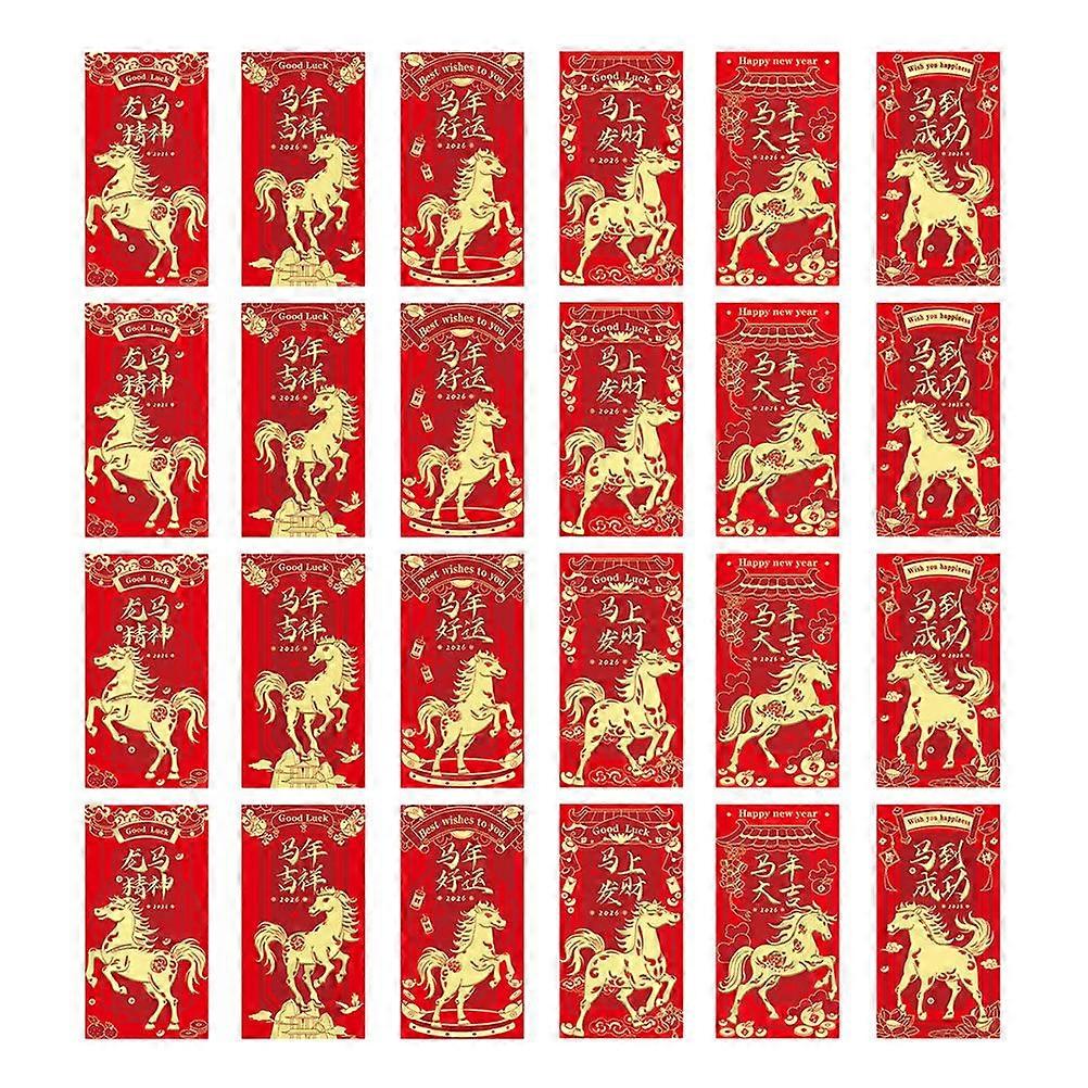 48PCS Chinese New Year Red Envelope - Chinese Hongbao Year of the Horse 2026 Red Packets Lucky Money Envelopes for Spring Festival Birthday Party