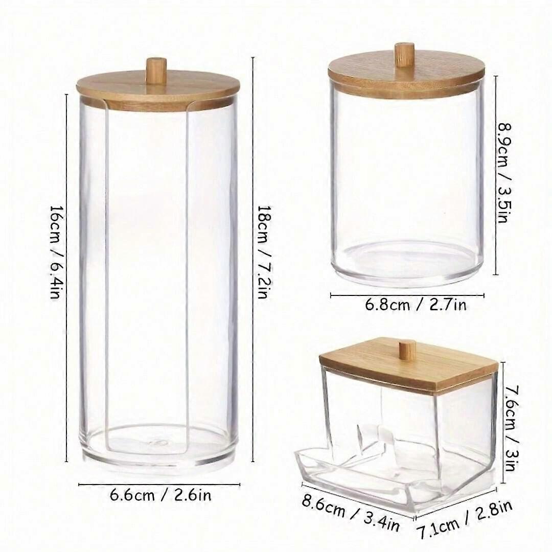 3pcs/set Makeup Coton Storage Box, Bamboo Lid Coton Swab Box, Portable Dust-Proof Transparent Placement Box, Bathroom Vanity
