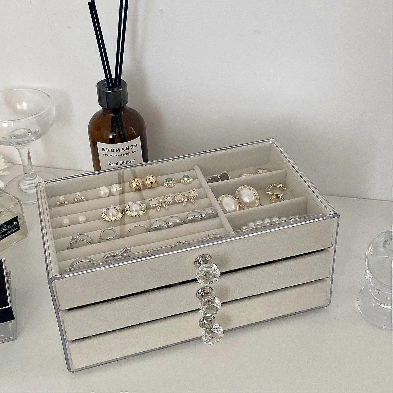 3 Layer Jewelry Organizer Boxes,with Organizer Drawer, Velvet Earring Organizer, Holder Boxes for Stud Earrings, Rings