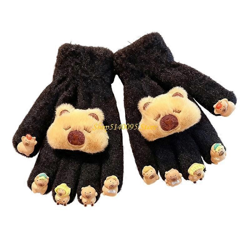 DXAE Kids Animal Themed Winter Gloves Soft Polyester Capybara Design Warm Comfortable Outdoor Play Accessory