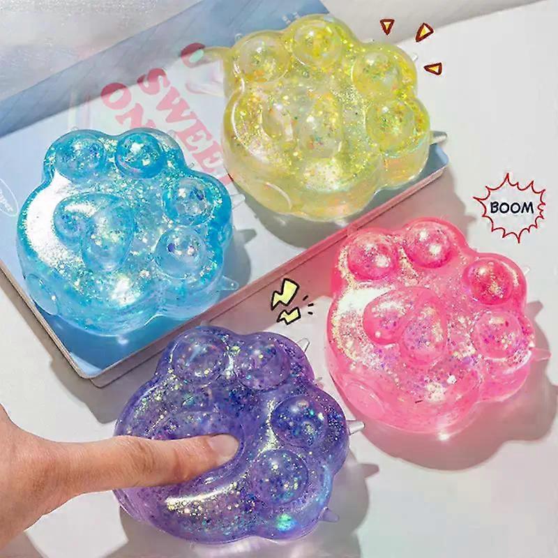 Kids Anti-stress Soft TPR Slow Rebound Sequins Maltose Pinch Toy Stress Relief Elastic Squeezing Colored Cat Paw Decompression