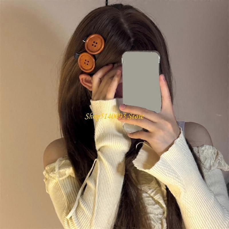 DXAE Wooden Pattern Button Hairpin Side Hair Clip For Casual Styling Hair Clip
