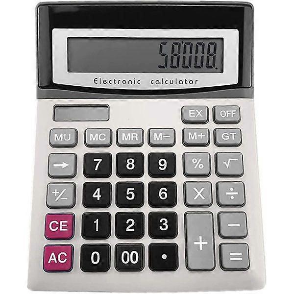 Desktop calculator, 12-digit solar-powered office calculator with large LCD screen, large sensitive button, dual power sources
