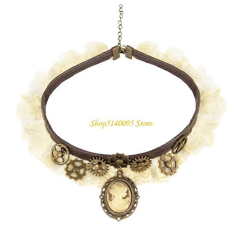 DXAE Dainty Lace Gear Choker Necklace Gothic Lace Choker for Halloween Weeding