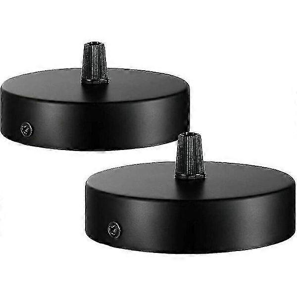 100 X 20mm Ceiling Canopy, Metal Junction Box, 1 Hole Round Shade - Ceiling Rose - Matte Black, All Lamps Fits (2 pcs) -