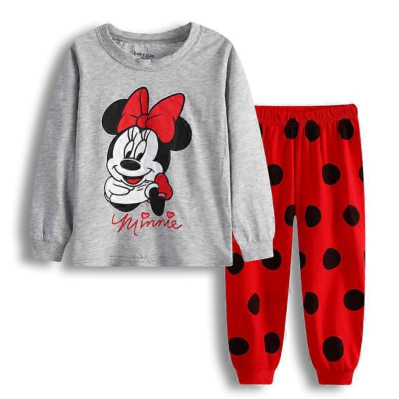 New Spring Autumn Children's Clothing Sets Minnie Girl Grey Red Sleepwear round dot Clothes Kids Pajamas Set Baby Girls Pyjamas