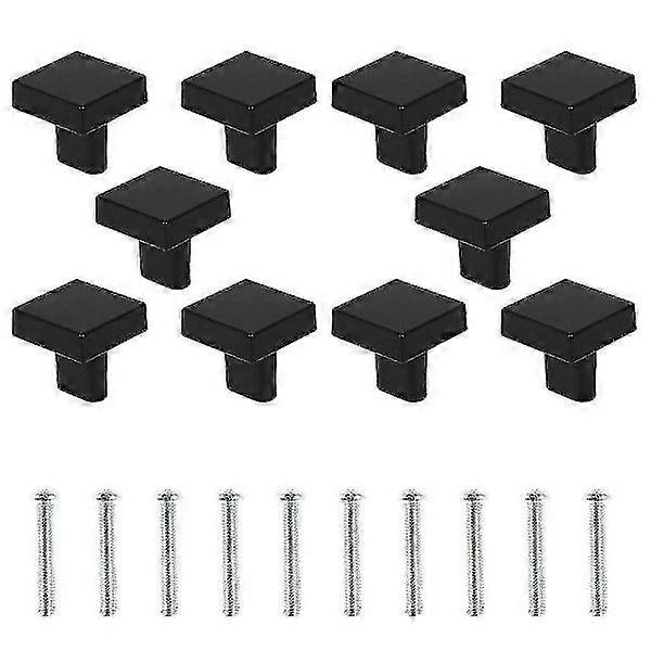 Set of 10 Black Door Knobs Solid Brass Square Cabinet Knobs Vintage Kitchen Cabinet Knobs with Screws for Cupboard Drawers (Black)