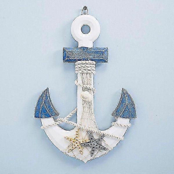 Wooden Anchor Decoration with Rope and Starfish Vintage Home Wall Decor Marine Mediterranean Style Nautical Decor Crafts Beach Theme Decorative Hangin