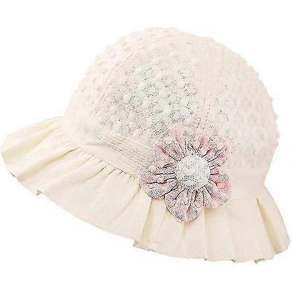 Girls Sun Hat, Floral Lace Embroidery Summer UPF50+ Wide Brim Bucket Hat Holiday Beach Hat Suitable for 3-18 Months