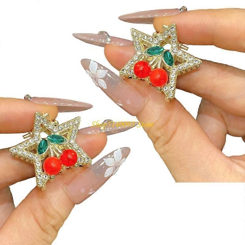 DXAE 2Pcs Adorable Cherry Hair Clip Gentle On Scalp Strong Grip Small Size Hairpin For Travel School Parties Women Children