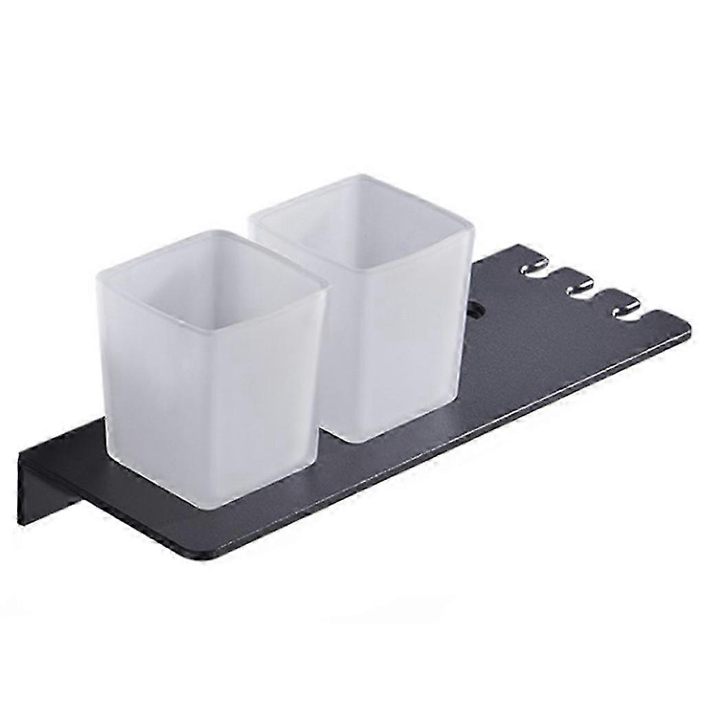 Space Aluminum Toothbrush Holder Single/double Hole Mouthwash Cup Holder Toothpaste Rack Bathroom Shelf Wear-resistant Black-lhh36