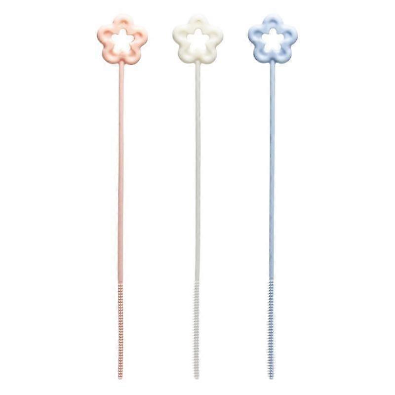 360 Degree Rotating Floral Silicone Straw Brush with Spiral Bristles for Baby Bottle Nipple Tube Deep Cleaning Baby Safe Straw C
