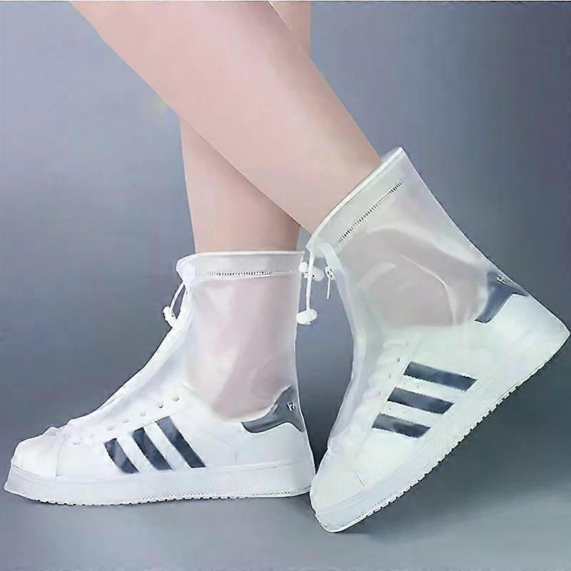 Unisex Waterproof Shoe Covers Non-Slip PVC Silicone Sole Reusable White for Rain And Snow Multiple Sizes
