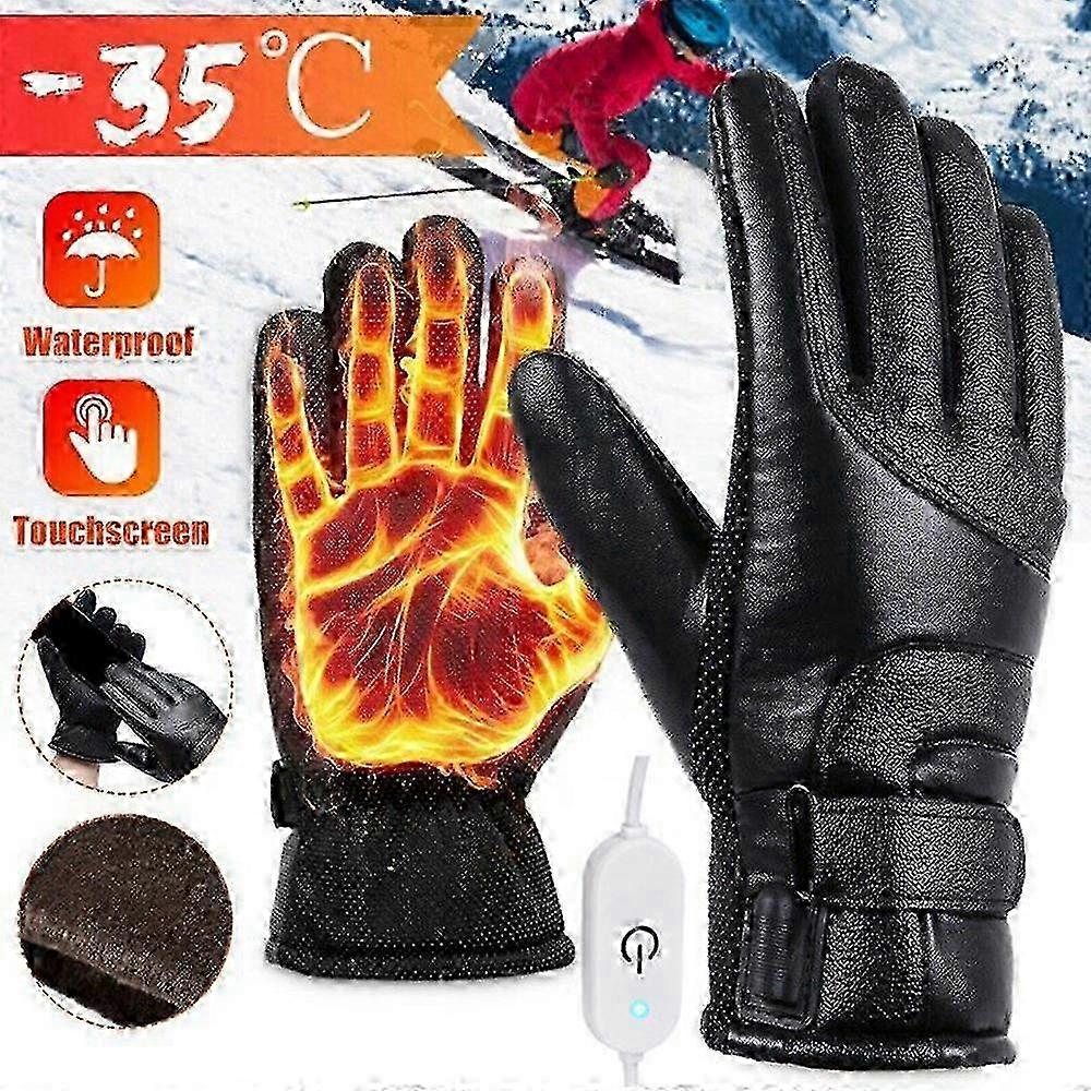 USB Heated Gloves for Motorcycle, Winter Outdoor Full Finger Warm PU Leather Mittens with 26-27 Electric Heating
