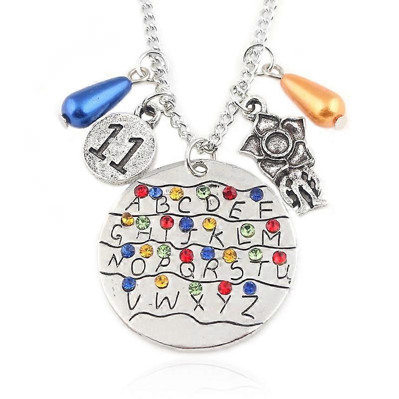 Stranger Things 4 Theme Necklace Flower 26 Letters Retro Pendant Halloween Best Gift for Kids and Friends