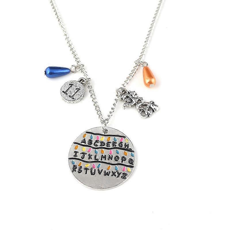 Stranger Things 4 Theme Necklace Flower 26 Letters Retro Pendant Halloween Best Gift for Kids and Friends