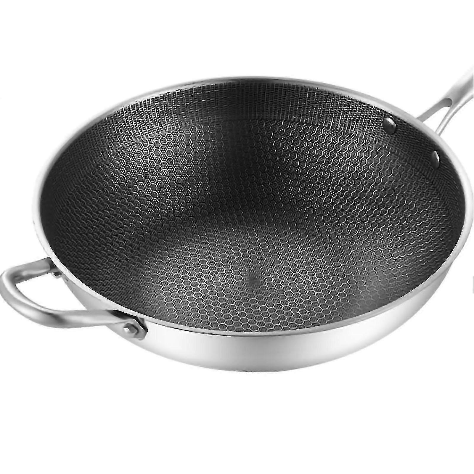 2026 Stainless Steel Double-Sided Honeycomb Wok Pan with 3 Layers - Anti-Sticking & Easy Cleaning, 34cm Size for Kitchens