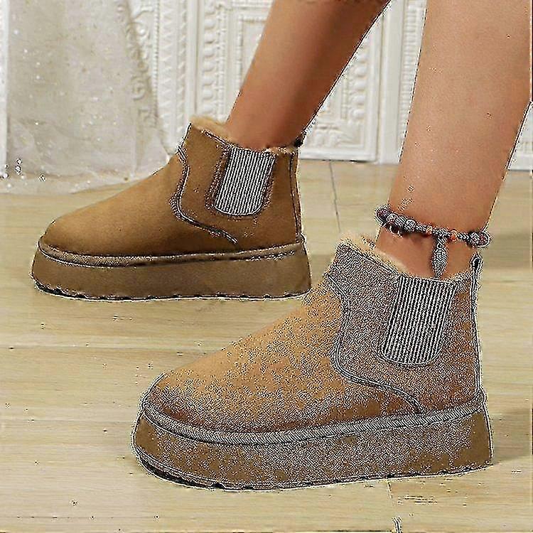 Women's Solid Color Fluffy Booties with Slip-On Fleece Lining - Warm & Plush Non-slip Platform Boots for Winter