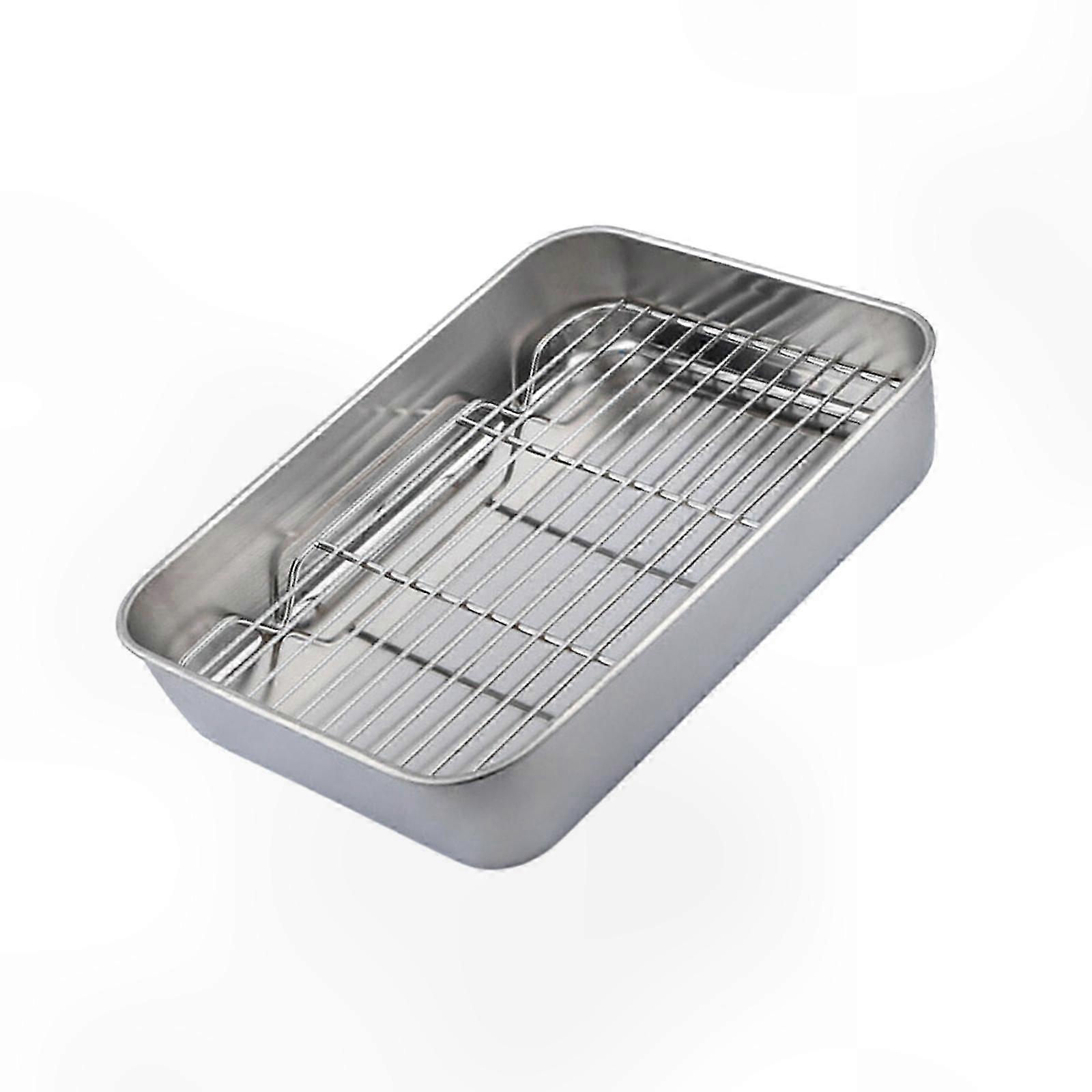 Features: This stainless steel baking pan with rack offers increased capacity and even heat distribution, ensuring consistent cooking results for large meals. Crafted from high-quality stainless steel, it features durable, rust-resistant construction and a smooth surface for easy cleaning. Ideal for home cooks, professional chefs, and baking enthusiasts who value efficiency and reliability in kitchen tools. Perfect for baking, roasting, and serving at family gatherings or parties, enhancing culinary experiences in various settings. Its versatile design allows it to function as a cooling rack or draining tray, adding convenience and space-saving utility to any kitchen. Specifications: Material: Stainless Steel Color: Silver Available Sizes: S: 23.5 x 17.5 x 5 cm (9.25 x 6.89 x 1.97 in) M: 26.5 x 20.5 x 5 cm (10.43 x 8.07 x 1.97 in) L: 31.5 x 24.5 x 5 cm (12.4 x 9.65 x 1.97 in) XL: 40.5 x 30.5 x 5 cm (15.94 x 12.01 x 1.97 in) Package Includes: 1 stainless steel baking pan with wire rack Note: Please allow for a 1–3 cm measurement variance due to manual measurement. Color representation may vary slightly depending on monitor settings.