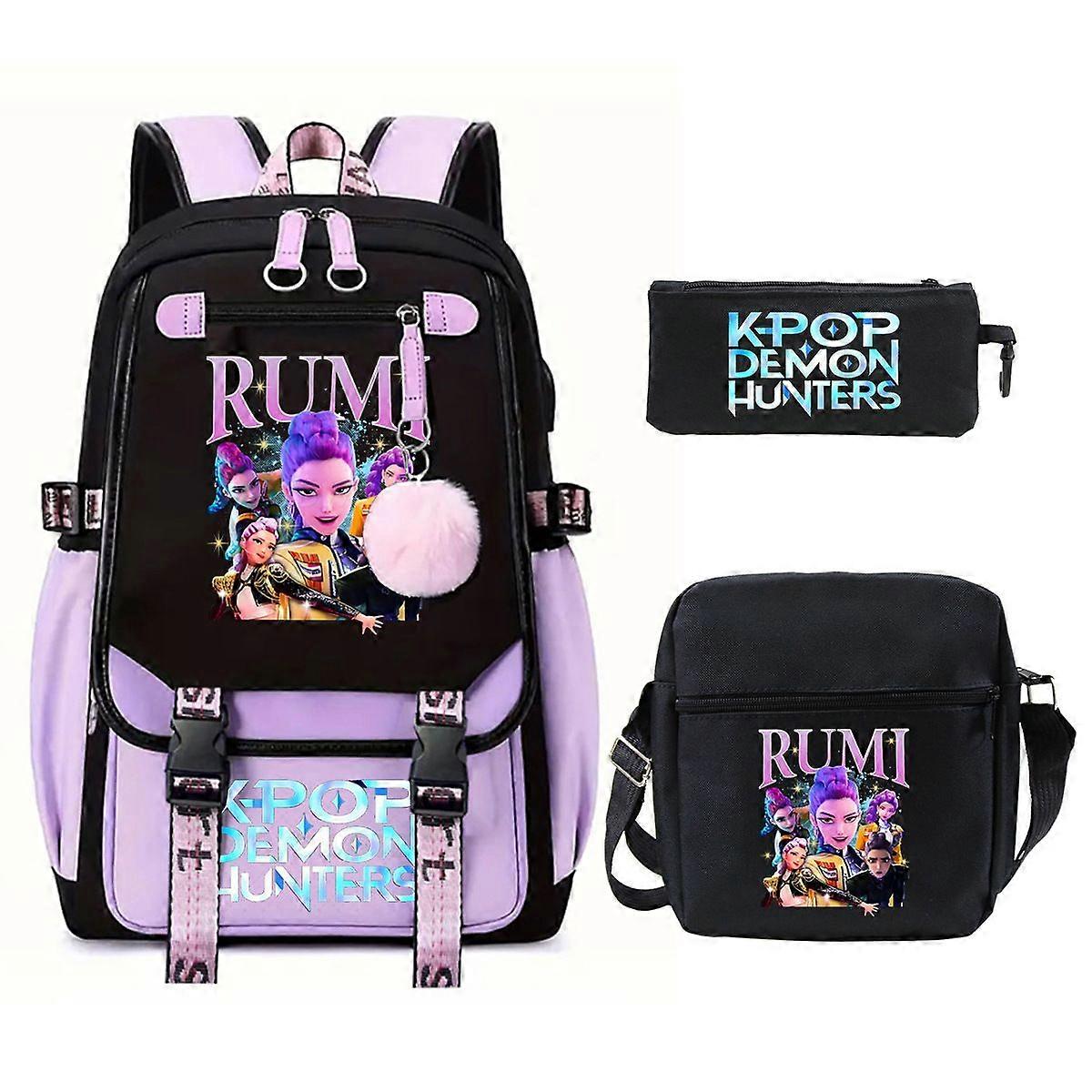 Demon Hunter Backpack Set - 3-Piece Set in Purple | School Bag for Girls with Pencil Case Purple 1