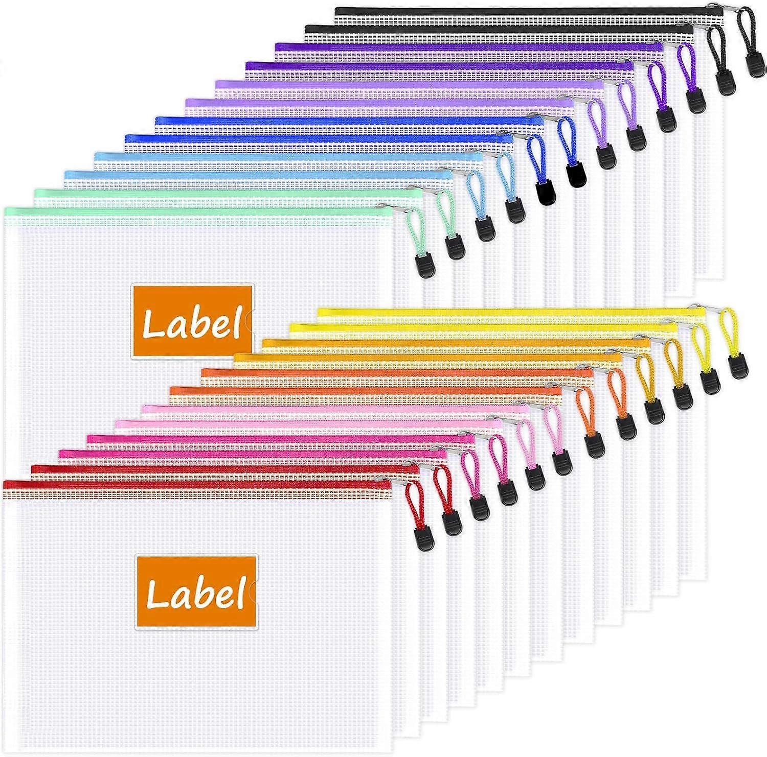 24-Pack Mesh Zipper Bags with Label Pocket, Small Pencil Cases for Organization, Transparent Plastic Pencil Cases in Bulk for Shoes