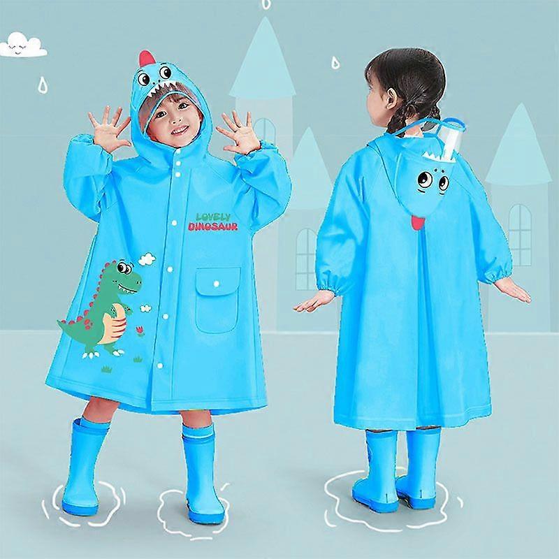 Children's rain jacket boys and girls primary school students new style children 3-10 years old children go to school with school bags rain jacket Blu