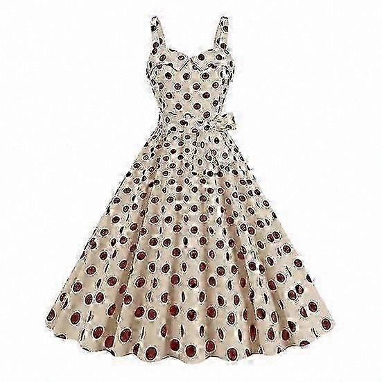 Vintage A-Line Dress for Women Retro Sleeveless Dot Print Contrast Color Elastic Bust High Waist Backless Knee-Length Evening Party Cocktail Outfit
