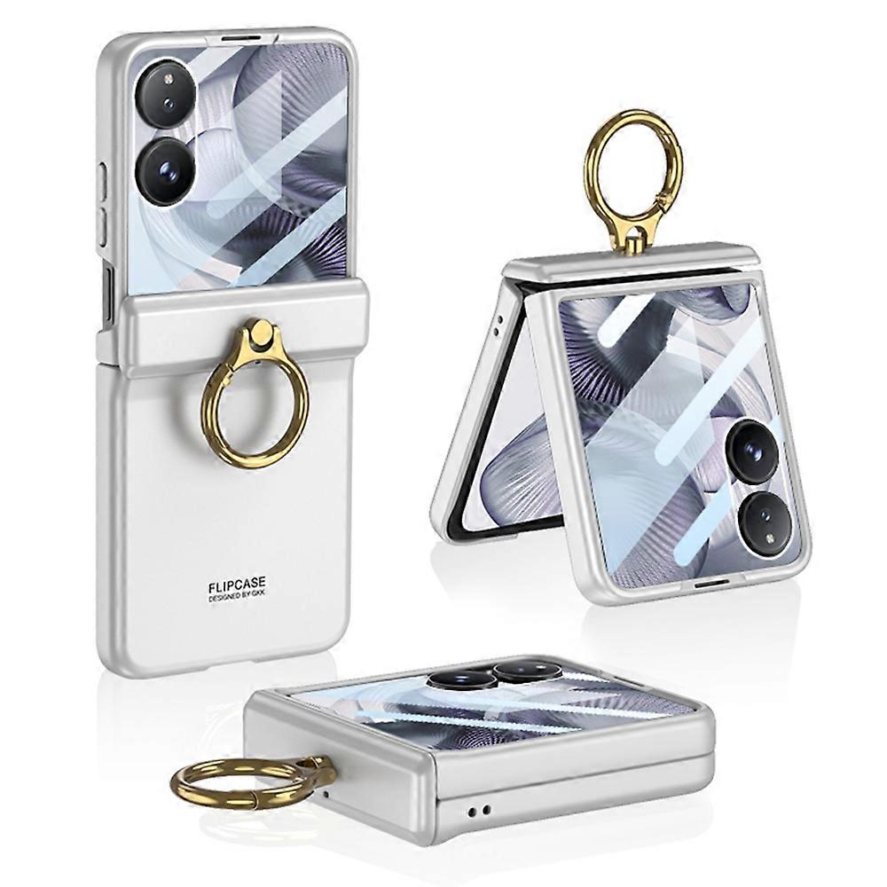 GKK For Xiaomi Mix Flip 2 Case with Ring Kickstand Magnetic Hinge PC + Tempered Glass Phone Cover -