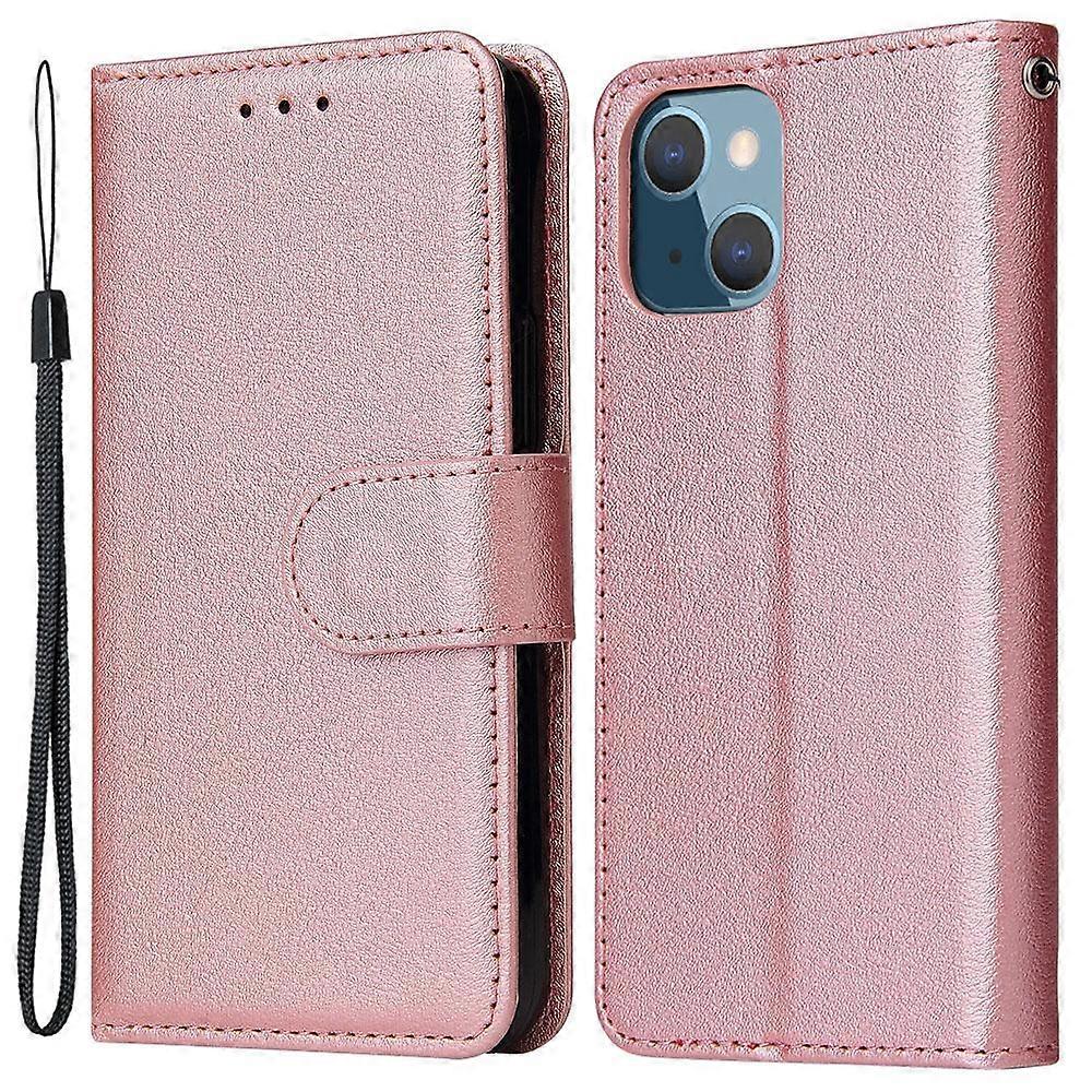 For iPhone 13 mini Case PU Leather Phone Cover with Card Slots Wallet - Rose Gold