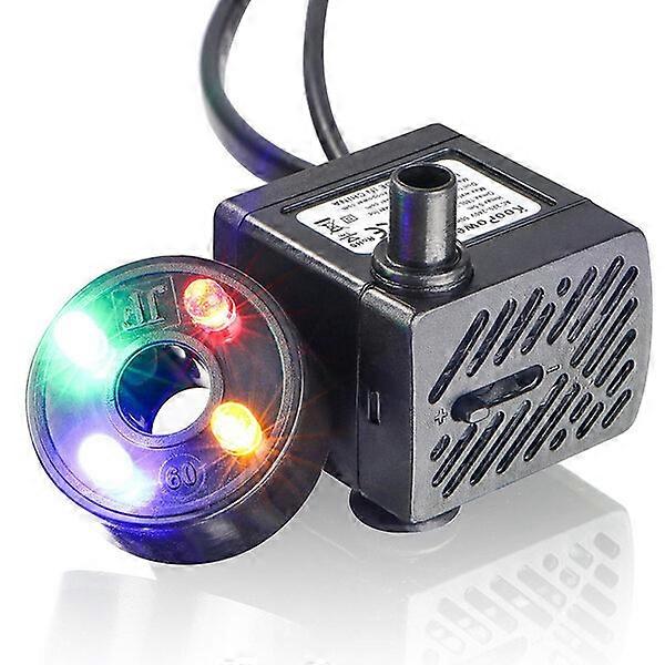 Submersible Pump 3.5W Ultra Quiet 4LED Lights Plastic Black for Fish Tank Aquarium