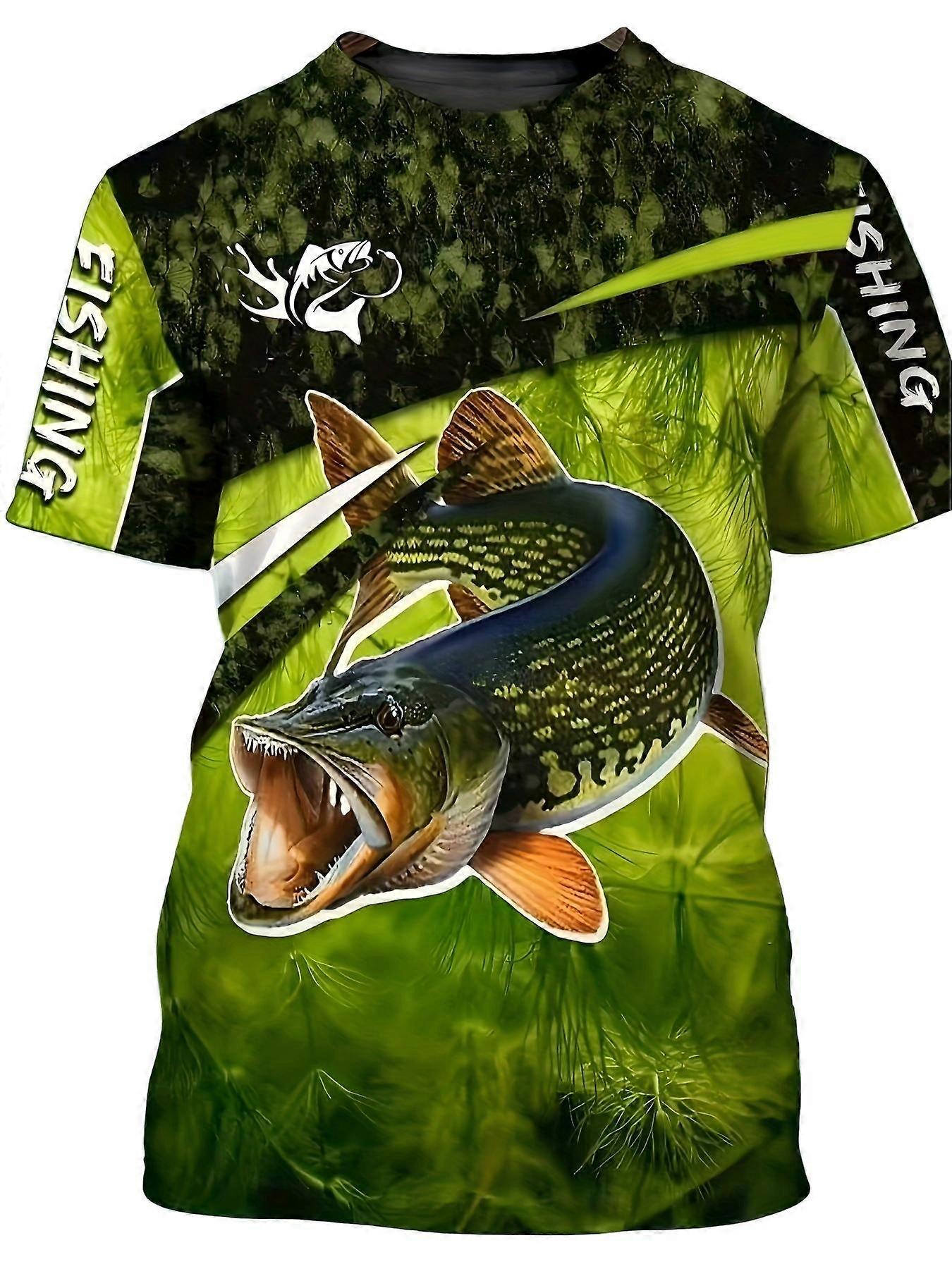 Men’s Fishing Graphic T Shirt Pike Fish Print Casual Outdoor Tee