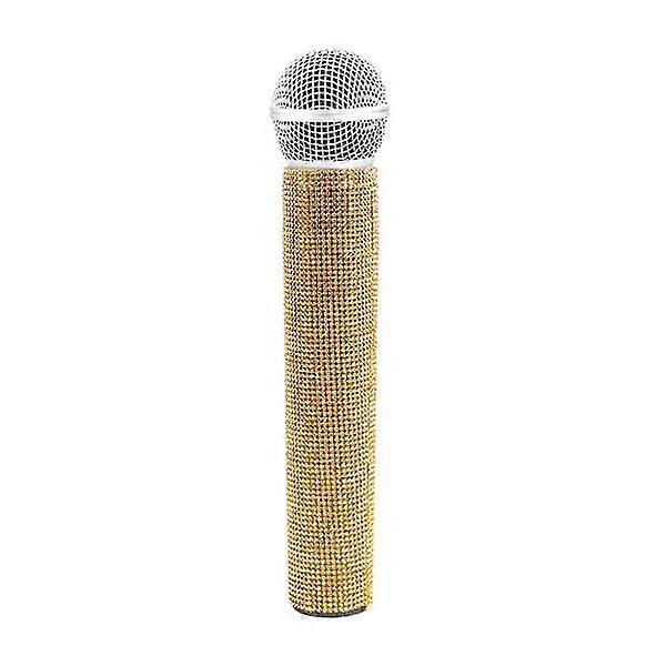 Rhinestone Microphone with Metal Grille 5.2cm Diameter Festival Performance Decorative Prop